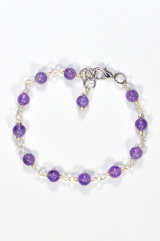 Handmade 4mm Amethyst Link Bracelet for Women