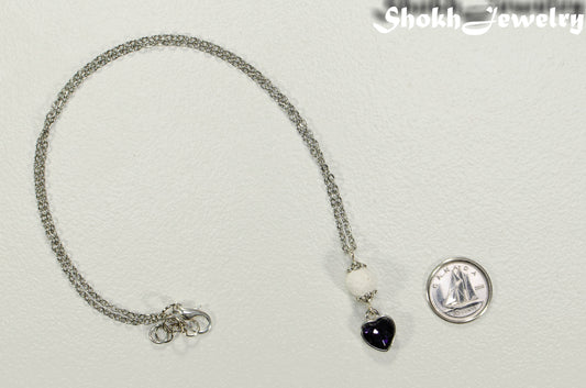 Lava Rock and Heart Shaped February Birthstone Choker Necklace