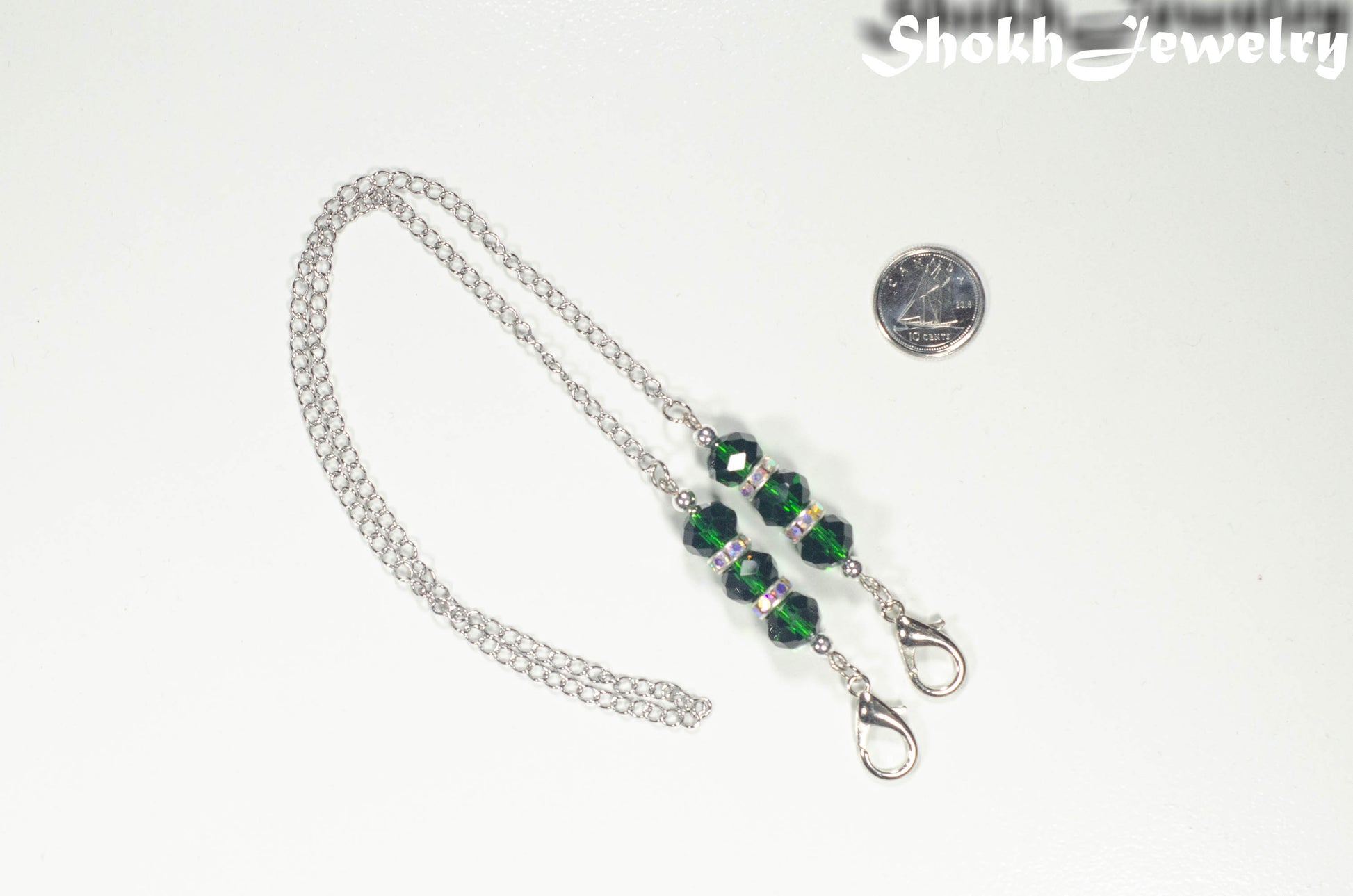 This simple and elegant mask lanyard/eyeglass chain is made with faceted glass crystal and sparkly rhinestone beads, silver plated spacer beads, lobster claw clasps and stainless steel chain. Please choose the colour of the glass crystal beads from the drop down menu.
