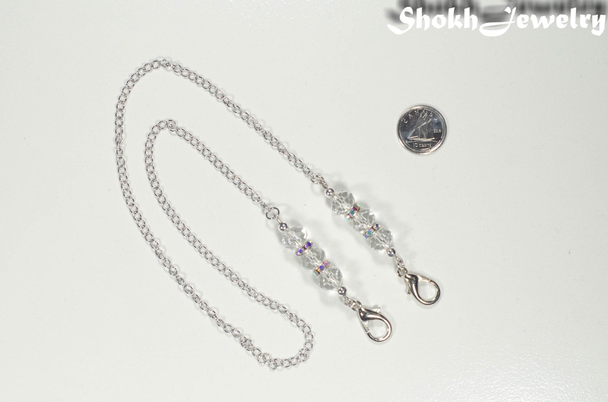 Clear Glass and Sparkly Rhinestone Eyeglass Chain, Beaded Face Mask Lanyard